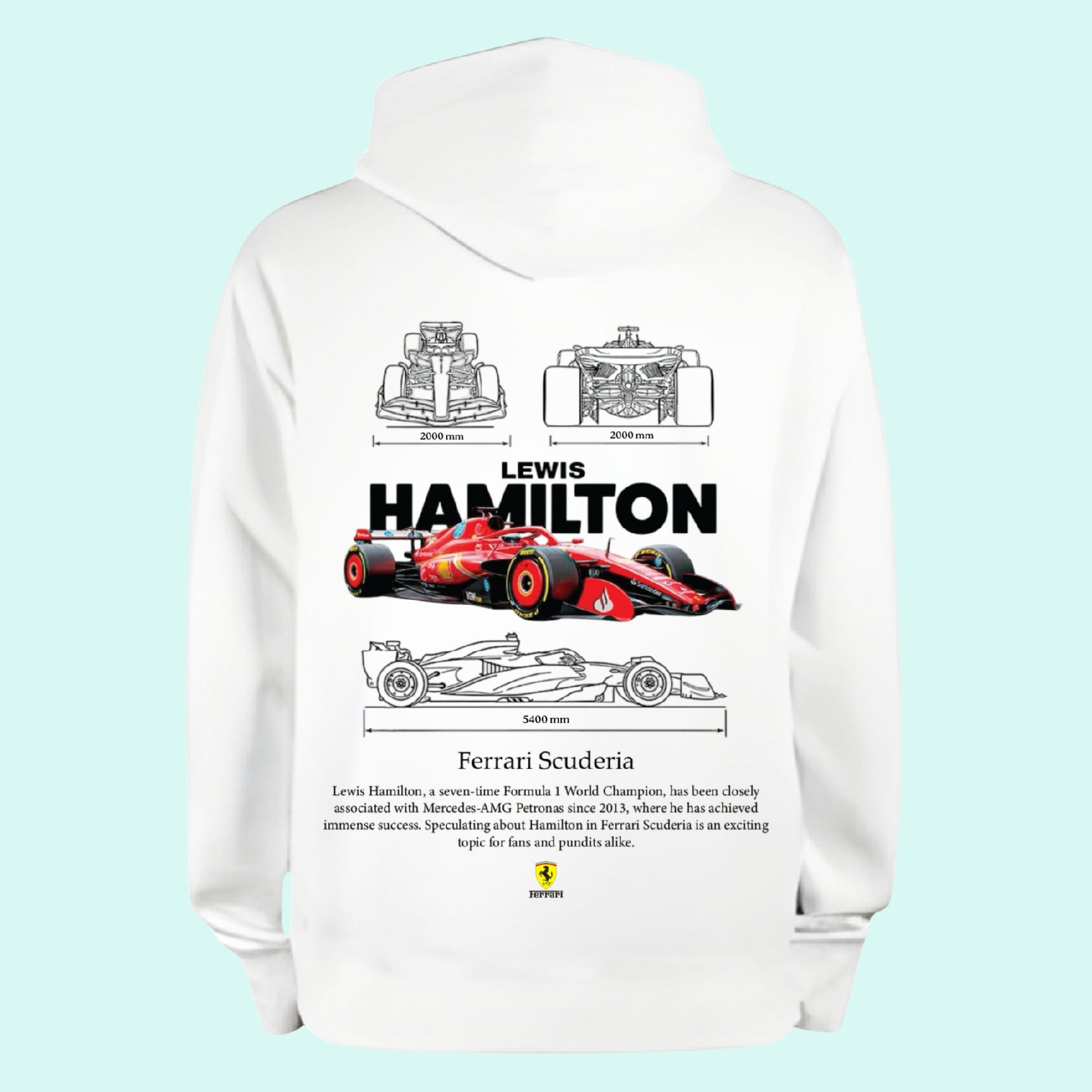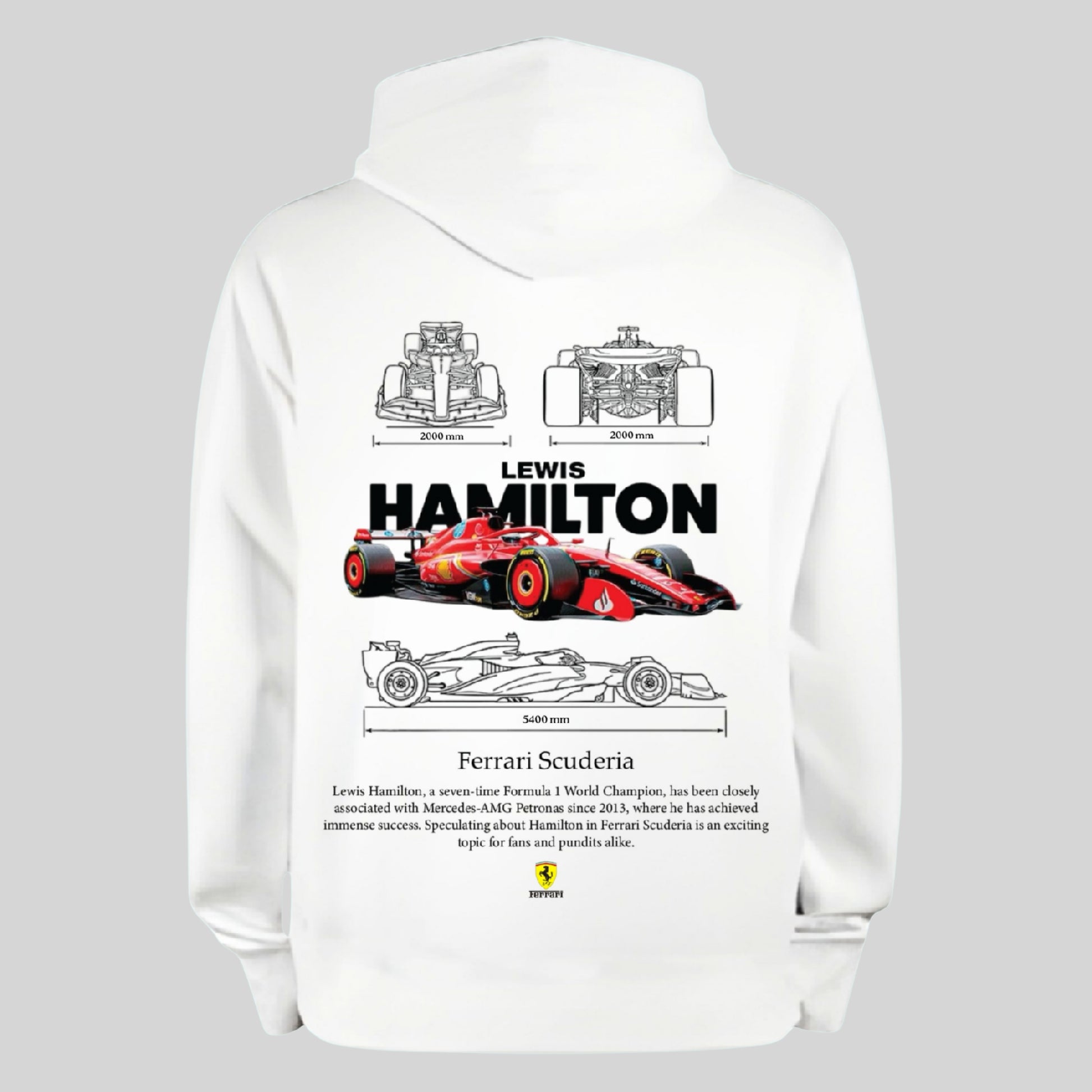 Experience the perfect blend of comfort and high-performance style with this F1 Racing Enthusiast Hoodie, designed for true Formula 1 fans. Featuring a high-detail car graphic inspired by Lewis Hamilton and Ferrari, this premium pullover delivers bold motorsport energy while keeping you comfortable all day. Crafted from soft and durable fabric, it’s ideal for everyday wear, race weekends, car meets or simply showcasing your passion for speed. Perfect for racing lovers and car enthusiasts, this hoodie is also an excellent and unique gift choice for birthdays or anyone who enjoys the thrill of F1 racing.