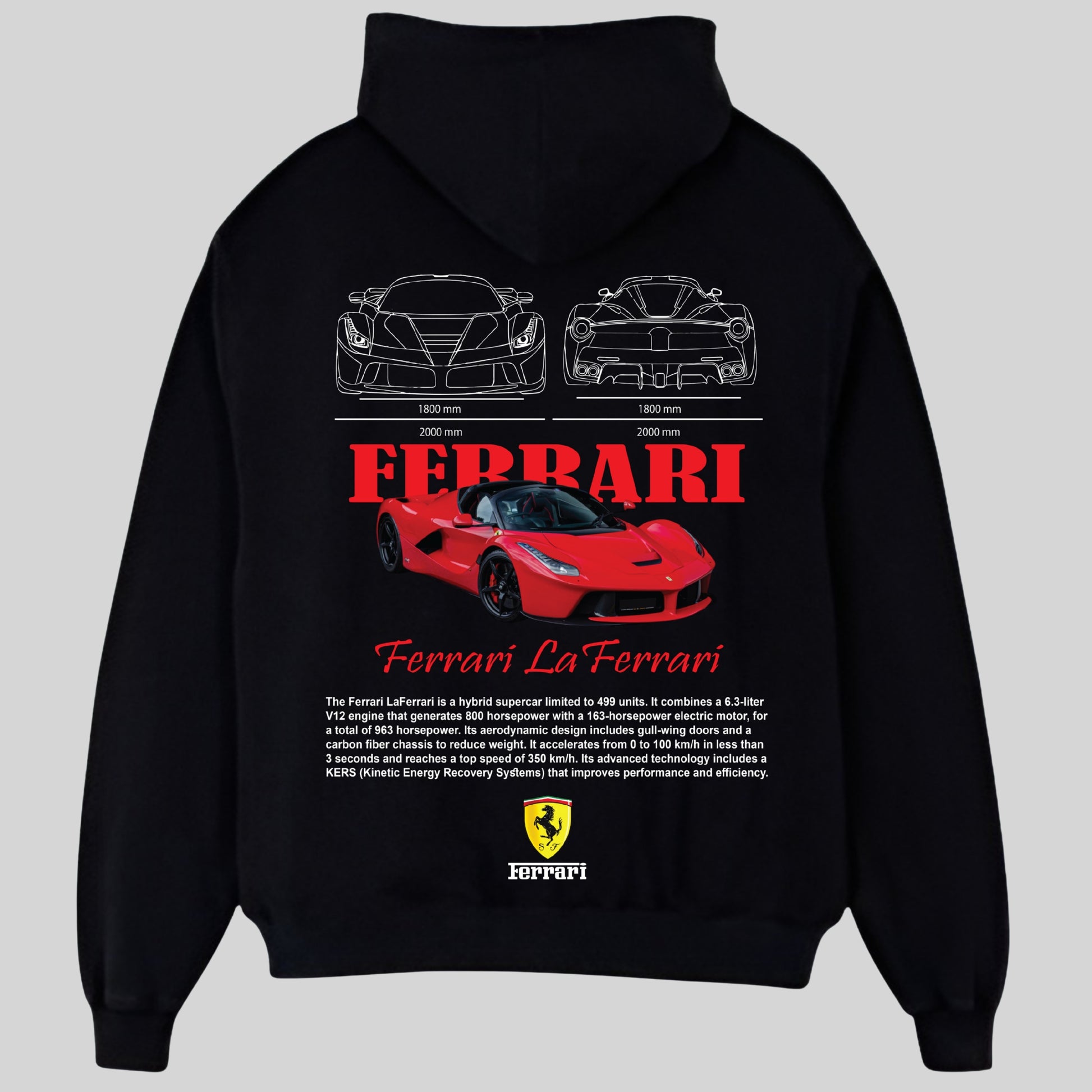 Show your passion for Italian performance with the Ferrari LaFerrari Hoodie, a premium pullover inspired by one of the most legendary supercars ever built. Crafted from a soft and durable cotton blend, it offers all-day comfort while showcasing a bold LaFerrari-inspired design that captures the essence of speed, style and exclusivity. Perfect for car meets, casual outings or simply representing your love for supercars, this hoodie is a must-have for Ferrari fans and automotive enthusiasts. More than just apparel, it’s a statement of power and prestige you can wear with pride. It also makes a perfect gift for car enthusiasts, petrol-heads and Ferrari lovers who want to showcase their passion in style.