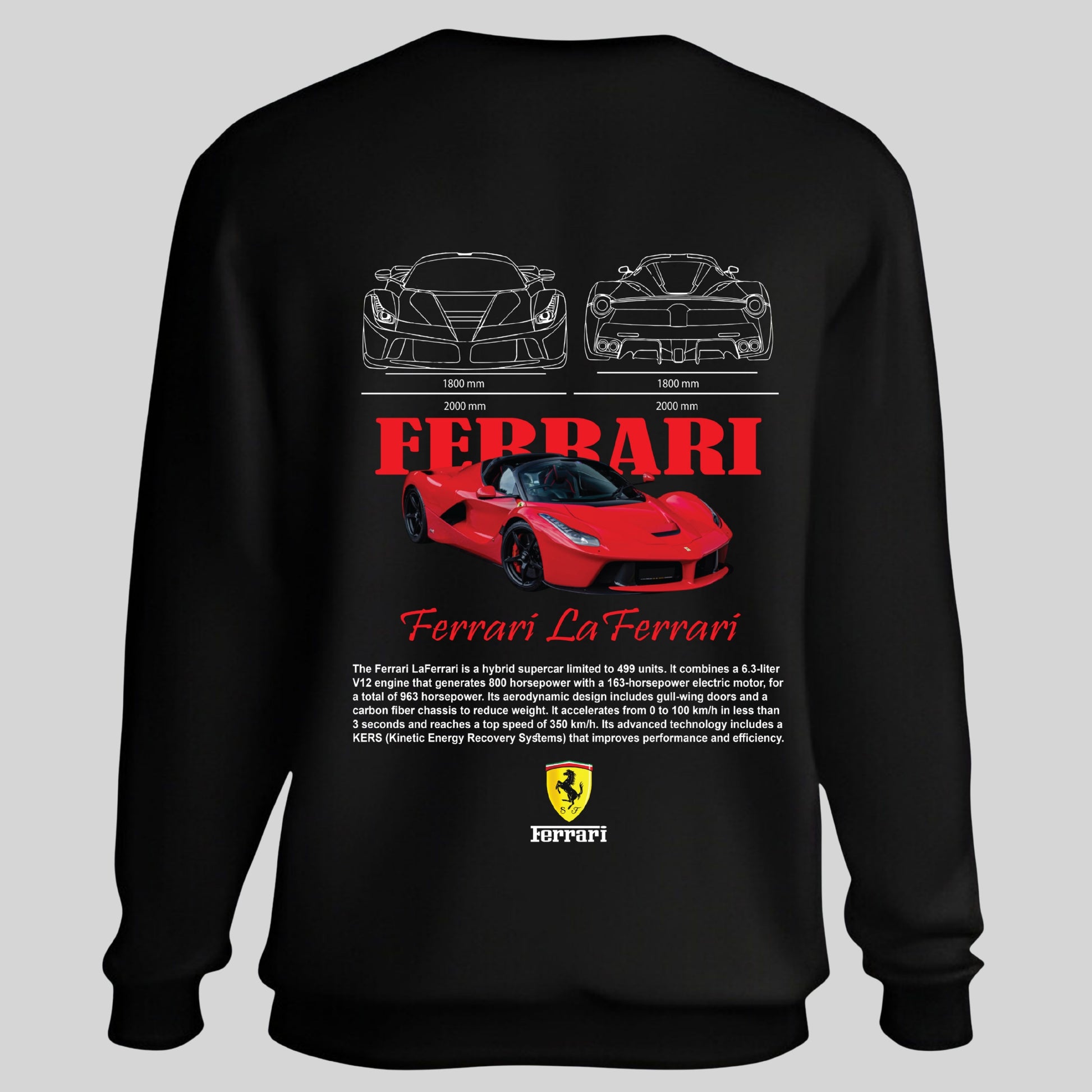 Show your passion for Italian performance with the Ferrari LaFerrari sweatshirt, a premium pullover inspired by one of the most legendary supercars ever built. Crafted from a soft and durable cotton blend, it offers all-day comfort while showcasing a bold LaFerrari-inspired design that captures the essence of speed, style and exclusivity. Perfect for car meets, casual outings or simply representing your love for supercars, this sweatshirt is a must-have for Ferrari fans and automotive enthusiasts. More than just apparel, it’s a statement of power and prestige you can wear with pride. It also makes a perfect gift for car enthusiasts, petrol-heads and Ferrari lovers who want to showcase their passion in style.
