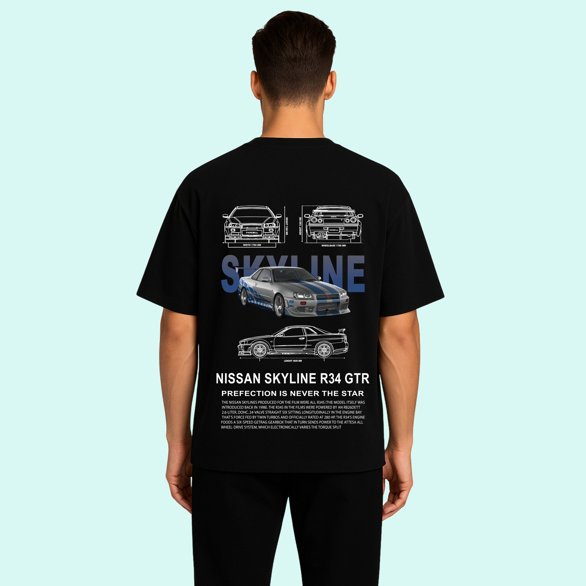 Show your love for the legendary GT-R R34 Skyline with this premium Skyline GT-R Oversized T-Shirt. Featuring a bold Skyline-inspired design, it blends motorsport style with everyday streetwear comfort. Crafted from high-quality fabric for durability and a relaxed oversized fit for both men and women, it’s more than just clothing, it’s a statement of power and passion. Perfect for casual outings, car meets or showcasing your passion for JDM culture. It also makes a perfect gift for car enthusiasts who want to wear their love for cars with pride. A must-have for Skyline fans and performance car lovers. This oversized t-shirt is ideal for the track, the street or anywhere you want to represent your love for cars.