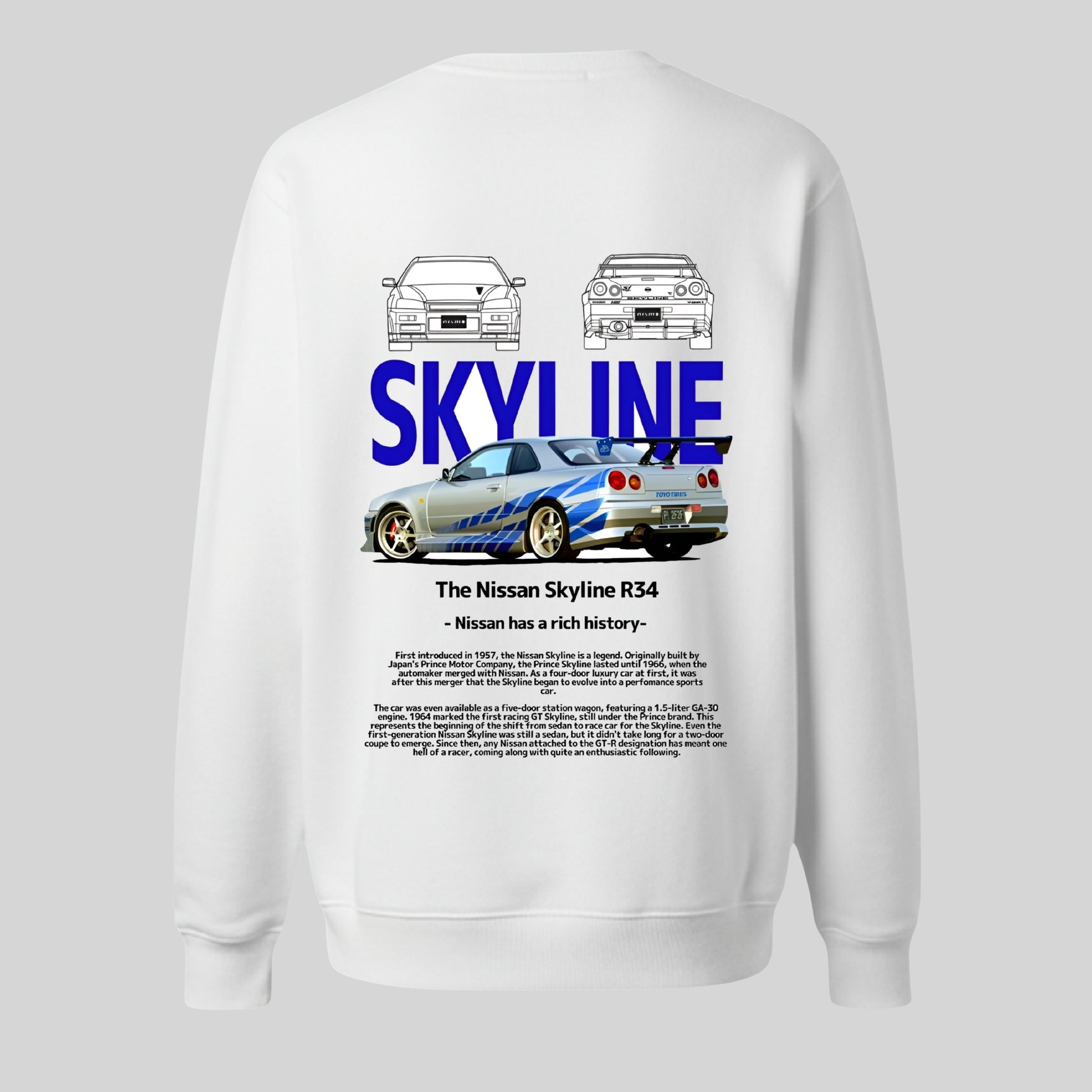 Show your passion for the legendary Nissan GT-R R34 Skyline with this premium sweatshirt designed for true car enthusiasts. Crafted from a soft and durable cotton blend, it delivers unbeatable comfort for both men and women. Available in multiple sizes for the perfect fit. It delivers all-day comfort while bringing iconic JDM style to your wardrobe. Featuring a bold Skyline-inspired design, it’s perfect for car meets, casual outings or simply showcasing your love for performance cars. A must-have for Skyline fans and JDM lovers. It’s more than just a sweatshirt, it’s a statement of speed, style and true automotive passion.