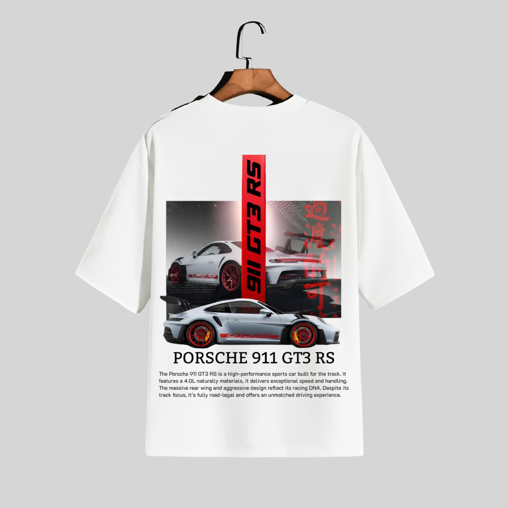 Show your passion for performance with the 911 GT3 RS Oversized T-Shirt, a premium tee designed for true supercar fans. Crafted from a soft and durable cotton blend, it offers all-day comfort while featuring a bold GT3 RS inspired design that captures the spirit of Porsche’s legendary track machine. Perfect for car meets, casual outings or simply showcasing your love for speed, this oversized t-shirt blends motorsport style with everyday wearability. A must have for Porsche enthusiasts and supercar lovers, it’s more than just clothing, it’s a statement of power, style and automotive passion.